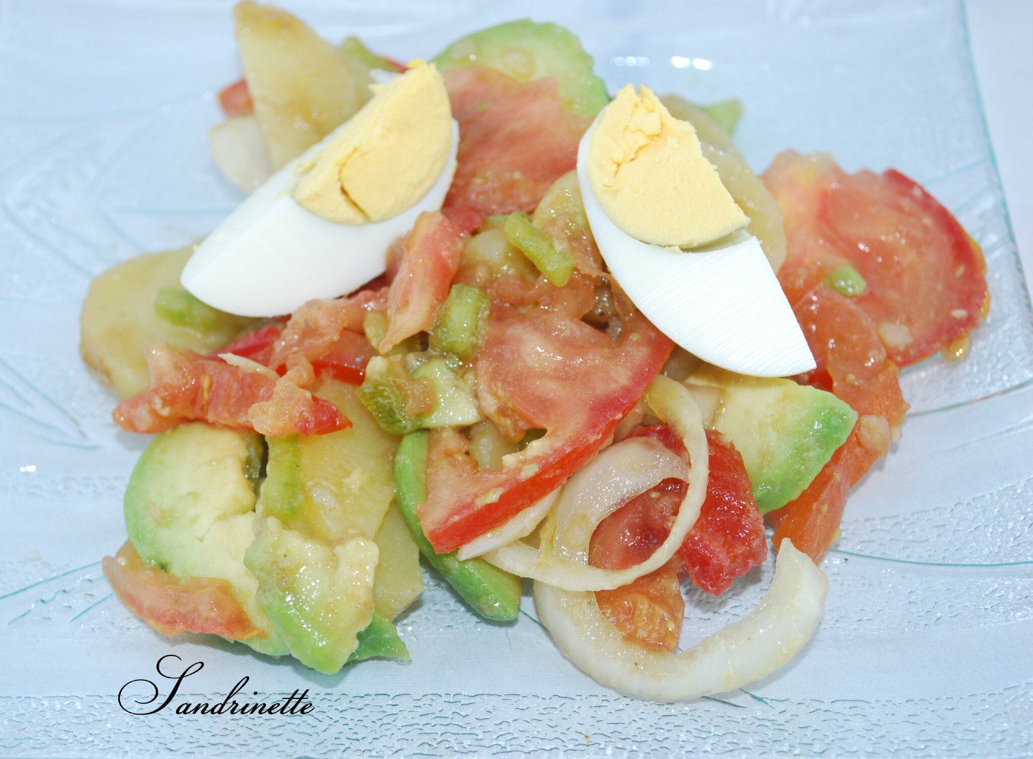 Piment, tomates, oeufs, oignons, salade batavia, vinaigrette maison, etc...